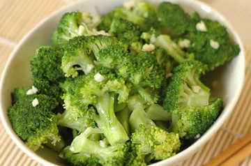 2.锅里放油,稍热后下蒜末爆香后将西兰花倒入同炒,快熟时用适量盐同鸡精调味即可。