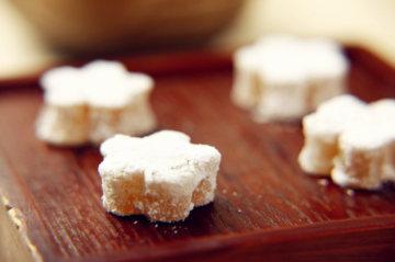 8.凝固后从模具中取出,表面裹上一层糖粉即可完成