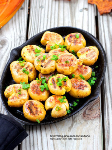 1、把土豆连皮切开一起蒸熟,把皮去掉,加盐压碎成土豆泥。