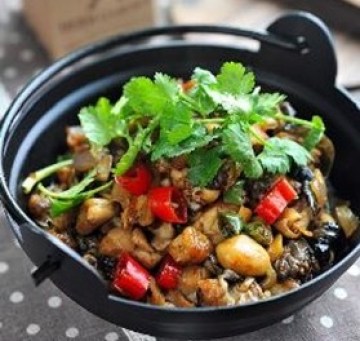 栗子辣子鸡、煎餃、客家酿茄子 蒸汽版。