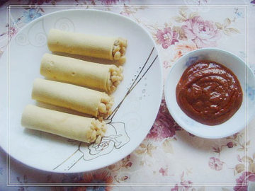 豆腐皮,金针菇,蛋液,酱料(自己喜欢的,比如番茄酱)