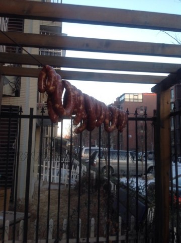 黑猪肉600公克,蒜头50公克,肠衣1条,盐1小匙,糖1大匙,高梁酒1大匙,酱油1大匙,五香粉少许,胡椒粉少许