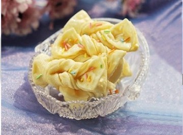 2、还有一种带咸味的排叉,原料为面面粉、苏打和盐,也用油炸,做法与姜丝排叉一样,不同的是它不过蜜,有酥、脆、味微咸的特点,爱喝酒的人常以咸排叉当下酒菜用。