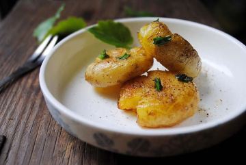 3。煎制的时候用小火,火大很容易把土豆皮煎糊掉