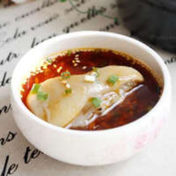 7、老妈蹄花蘸料的做法:老干妈、红油、生抽、陈醋备好,老干妈:红油:生抽=1:1:1的比例调制,陈醋依据个人口味酌量添加,再搅拌均匀即可。