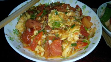 鴨蛋,番茄,大蒜,蔥,辣椒,糖,醋,鹽,芝麻油,油,蠔油