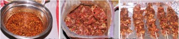 5.烤的时候不用再放盐和其他调料条为了,因为肉非常入味了,如果喜欢吃辣可以烤的时候再放些辣椒碎。