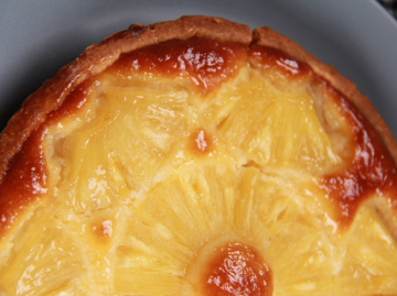 8、再将凤梨块放上做装饰。放入提前预热至180℃的烤箱中烘烤30分钟即可。