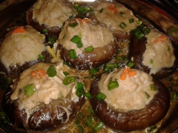 主料:花菇6朵,鱼胶肉,猪胶肉,葱花,胡萝卜丁少许,芫荽少许,马蹄丁少许