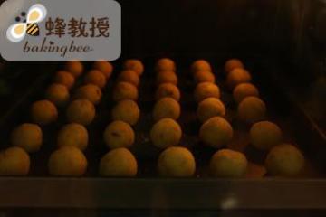 6、将小圆球粘上幼砂糖,排列在烤盘上。