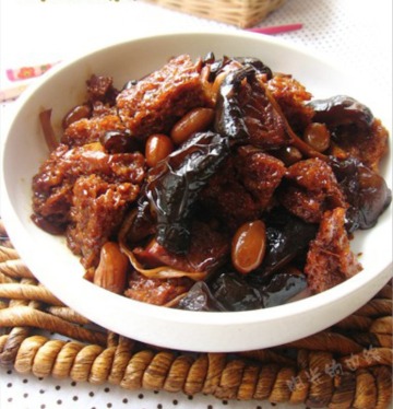 6.先用旺火烧开,然后用小火收汁至稠厚,最后淋上香油即可。