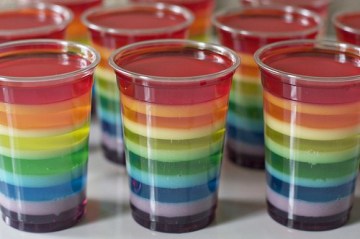 2、把布丁和果冻按你喜欢的方式凑在一起(可以捣碎,可以切丁,可以重叠……)。