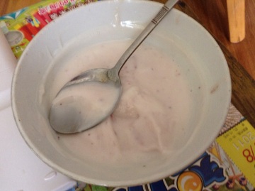 1:把酸奶倒入容器。