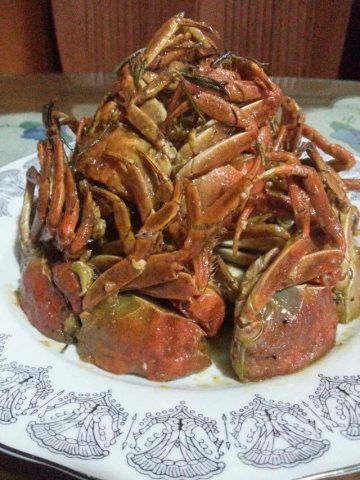 6、蟹差不多熟了就可以出锅装盘了!怎么样,看了是不是很有胃口啊!
