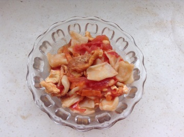 4,倒入西红柿块