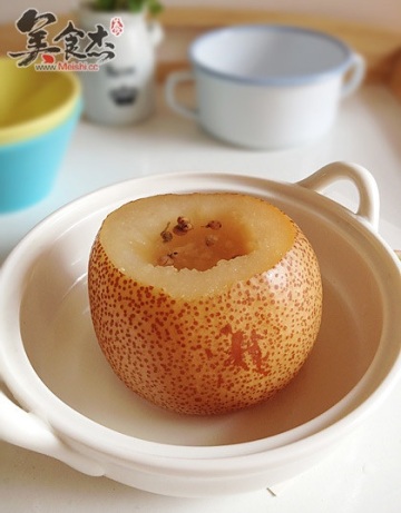 3.盖上梨盖,用牙签固定,入锅蒸30分钟左右。