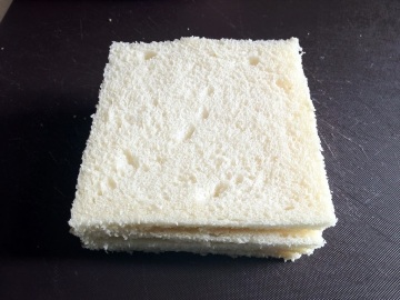 1、吐司切2-3cm厚片,中间挖出一个方形的坑,不要挖穿。