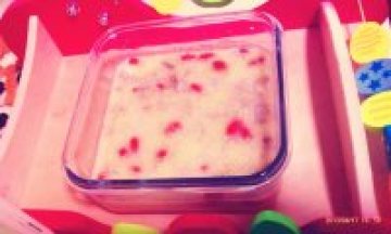 6.把香蕉小丁放入小米粥碗里。