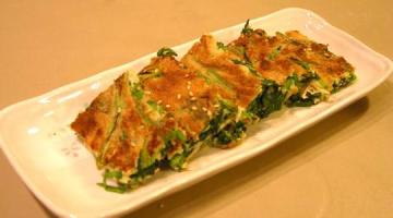 2、坐平底锅,倒入少许油,倒入拌好的糊摊平煎至两面金黄即可,可逐个煎,食用时配蒜末、酱油、香油调成的汁即可。