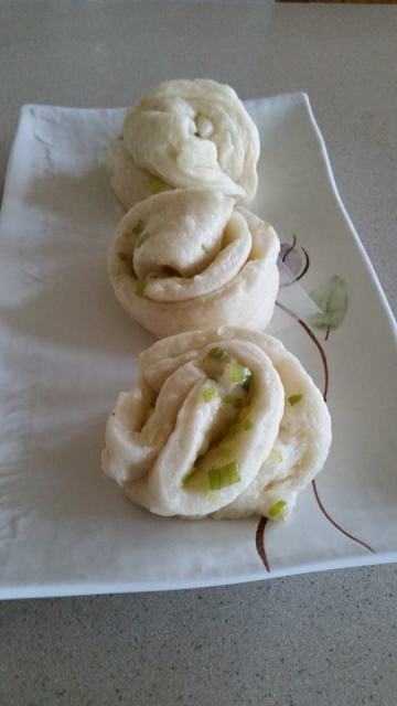 捲好的麵糰再次發酵三十分鐘,即可上蒸籠蒸。蒸十分鐘後整籠(連蓋子) 放涼五分鐘。切記在這五分鐘的時間內不可掀鍋蓋,否則成品會塌下去。五分鐘後開鍋即可享用。