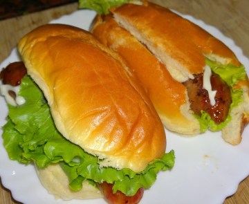 1:长型餐包2个,台湾香肠2条,生菜3片