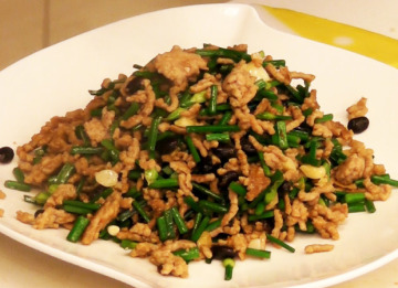 豆油伯金豆酱油1/2茶匙、辣豆瓣酱 1茶匙、蒜碎2茶匙、绍兴酒1/4杯、猪绞肉300g、黑豆鼓 1茶匙、韭菜花200g