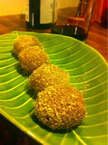 6、沾满豆粉的圆子装载盘子里,波冬细就做好了。