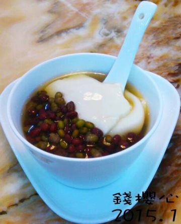 干黄豆1杯,(豆浆机附的量杯),豆花粉(请按买来的说明指示添加) 果糖少许<果糖的热量比较低,而且是透明色.如果买不到果糖的话,可自煮糖水(水糖1:1)>; 蜜红豆<作法参照之前写的魔法母女的糕饼课(九)甜蜜蜜的哆啦a梦>; 用冷开水调少许抹茶粉(加点果糖)后, 舀一大匙抹茶水在小碗内,舀豆花,然後加点蜜红豆**