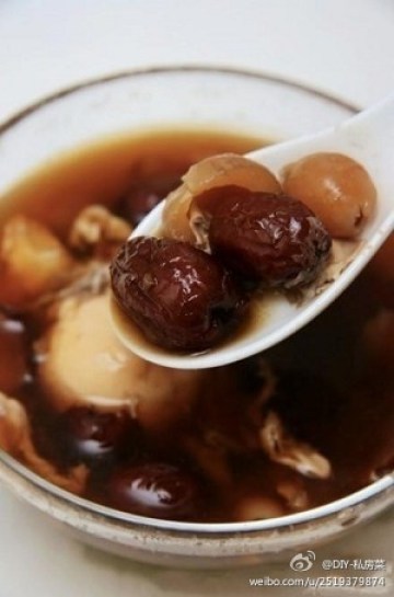 注意,枸杞子不要放多,几粒即可,红枣和桂圆6—8粒就行了