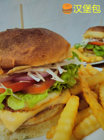面包胚,汉堡鸡肉,乳酪片,菜油,鸡蛋,番茄,生菜,大葱,卷心菜,沙拉酱,薯条