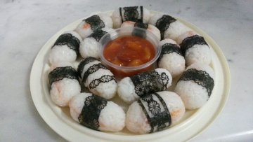 3、珍珠米煮熟,用手或模具幫手整成飯團。