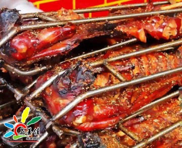 (1)将准备工作做好后,用特制的铁夹将兔子夹在中间,然后放到烤炉上,如果家里没有特制的夹子,用普通的铁夹也是可以的,原则以兔子不会掉下去为准。
