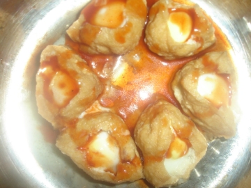 鹌鹑蛋,油豆腐,盐,糖,胡椒粉,番茄酱,生抽.