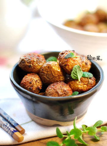 10、最后将鲜薄荷叶撕碎拌入,外表酥脆,内里绵软,味道香浓的云南小土豆就可以享用了。一口一个!又香又面,好吃的停不了口!