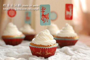 14. 把奶油装进裱花袋,用12齿的菊花嘴在杯子蛋糕上挤上奶油即可。