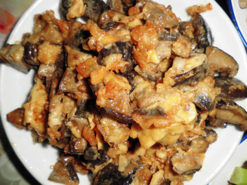 6.倒入香菇片翻炒即可.