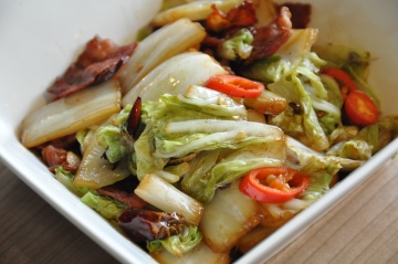 白菜,培根,老干妈,盐,白醋,生抽,鸡精