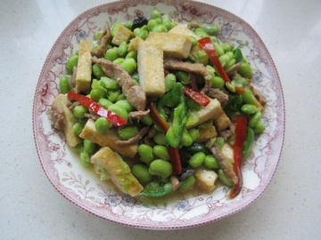 第二种:美食美味的豆腐干毛豆青椒做法