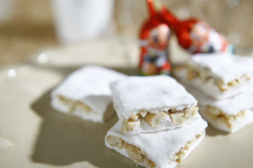 6. 以折叠的方式叠入中间夹层中,略冷却后切成方块状,长4cm、宽4cm、高2.5cm。