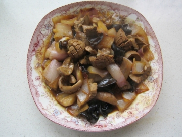 第一种:美食美味的洋葱木耳腰花做法