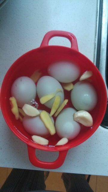 1.烧适量开水,加盐至不溶解,放凉.鸭蛋壳洗净后,同姜,蒜头一起放入冷盐水中,加适量白酒封存.