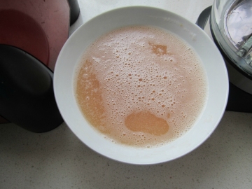 2、加入适量砂糖和温开水,通电开成汁,完成~~