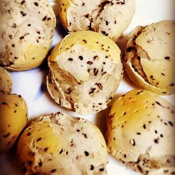 6,鹹鹹香香的芝麻,搭配超q彈的麵包體,熱熱的吃外脆內q,讓人忍不住一口接一口!如放涼了口感就會較硬,可放入微波爐溫町熱30秒再食用。