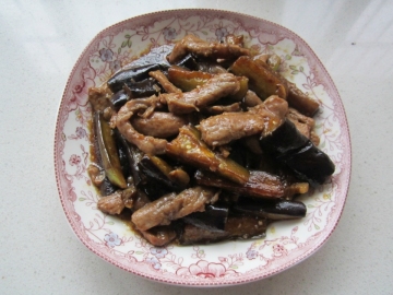 茄子250克,牛肉150克,油、鸡精、酱油、料酒、葱姜蒜、郫县豆瓣酱、盐适量。
