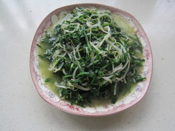 第三种:美食美味的炝菠菜绿豆芽做法