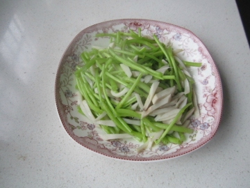 1、芦蒿去叶和老筋洗净掐段,杏鲍菇切丝焯水。