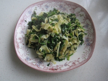 荠菜300克,百叶100克,油、盐、鸡精适量