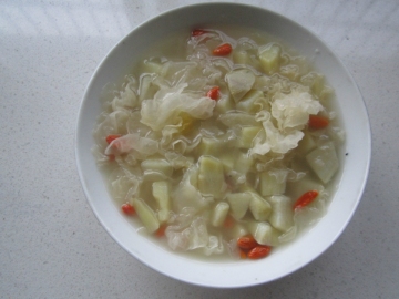 3.将泡好的银耳洗净,放入锅中,加水煮至软糯