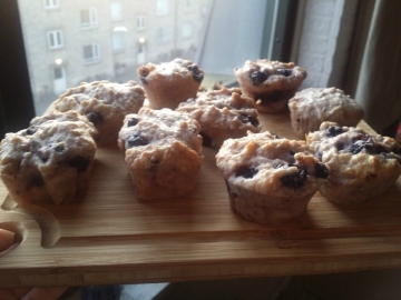 蓝莓干30克,面粉100克,鸡蛋50克,白糖30克,色拉油50克,泡打粉3克,酸奶50克
