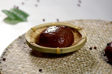 7、松弛完之后,掌心微微压扁成薄片,包入10g的巧克力豆;